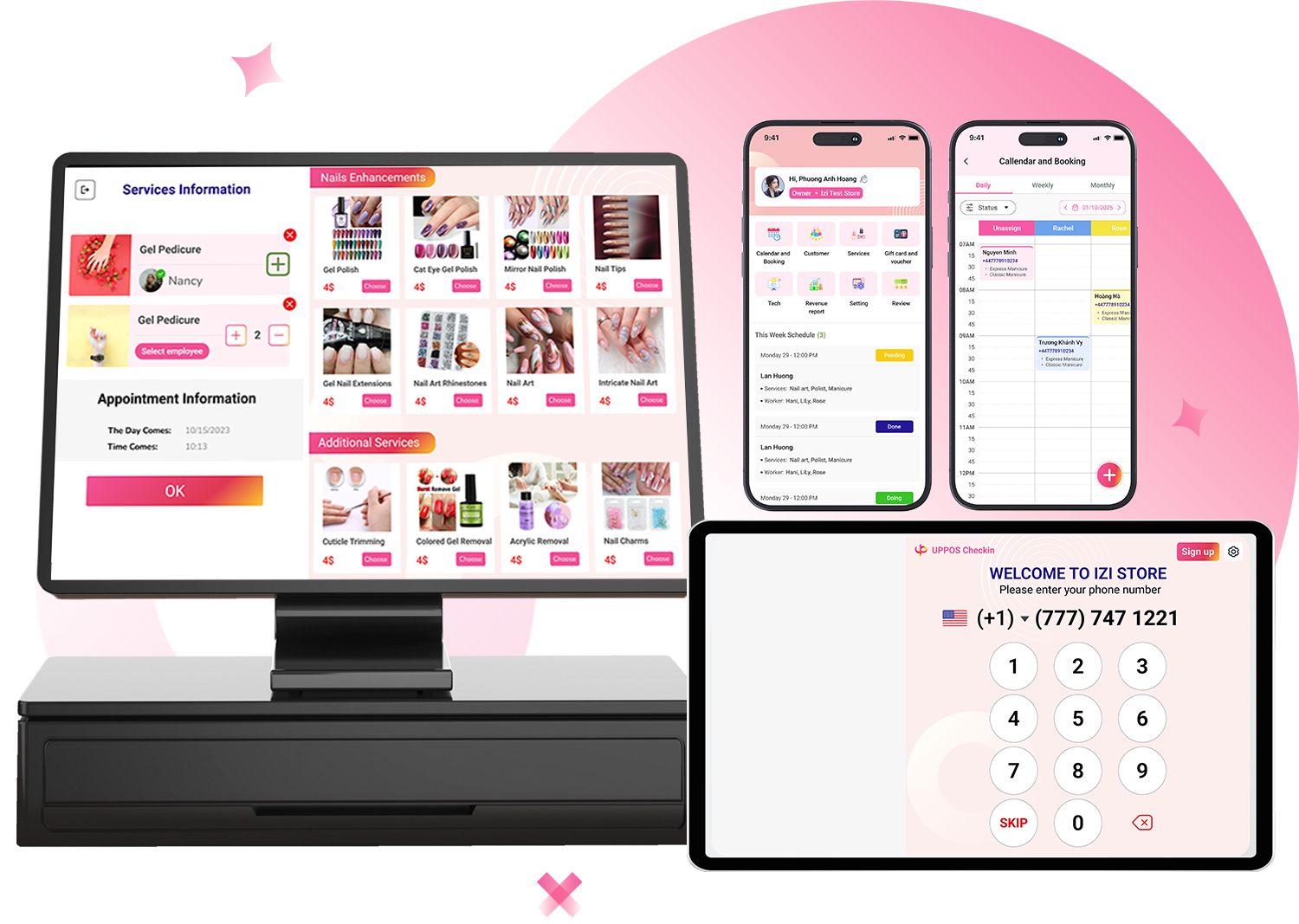 UPPOS is the all-in-one platform made for nail salons. Handle bookings, checkout, staff, and stock in minutes—then view clean, real-time reports that turn everyday work into measurable growth.